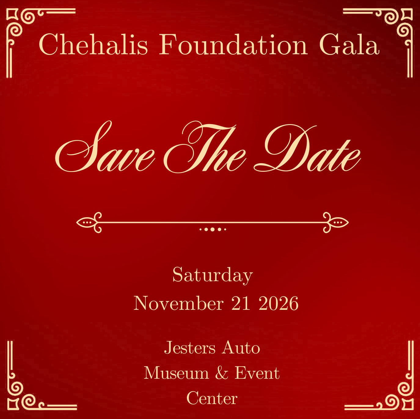 Tickets for the 2026 available soonThe Chehalis Foundation’s Annual Winter Gala will take place on Saturday, Nov. 21, 2026, at 5:30 PM. We look forward to having you join us for an evening of celebration and community support.
